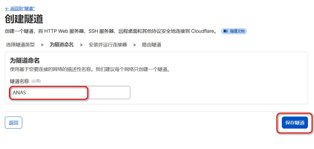 隧道名称根据自己需求随便填一个,然后保存隧道。